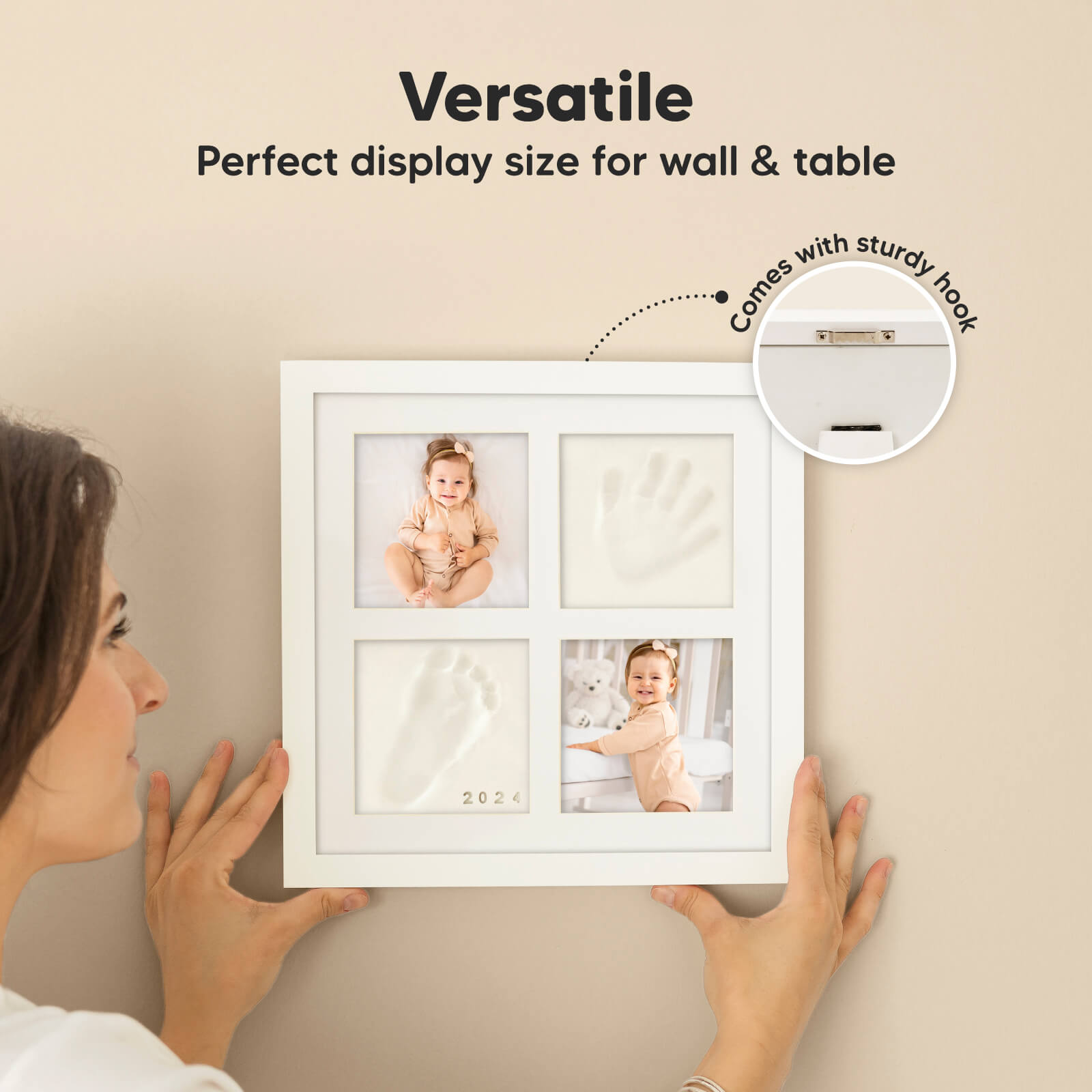 The Ever Hand and Footprint Kit is a timeless addition to any home or nursery decor. The distinctive cottage window-like display adds sophisticated charm to your treasured keepsake.