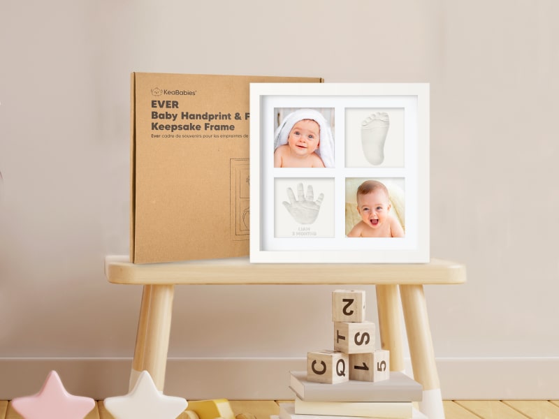 Capture treasured memories with our Ever Baby Hand and Footprint Frame Kit. The premium wooden frame kit with crystal-clear glass cover, includes 4 colored cutouts, baby-safe air-dry clay and alphabet stamp to meet all your personalization needs. Showcase your...(See More)